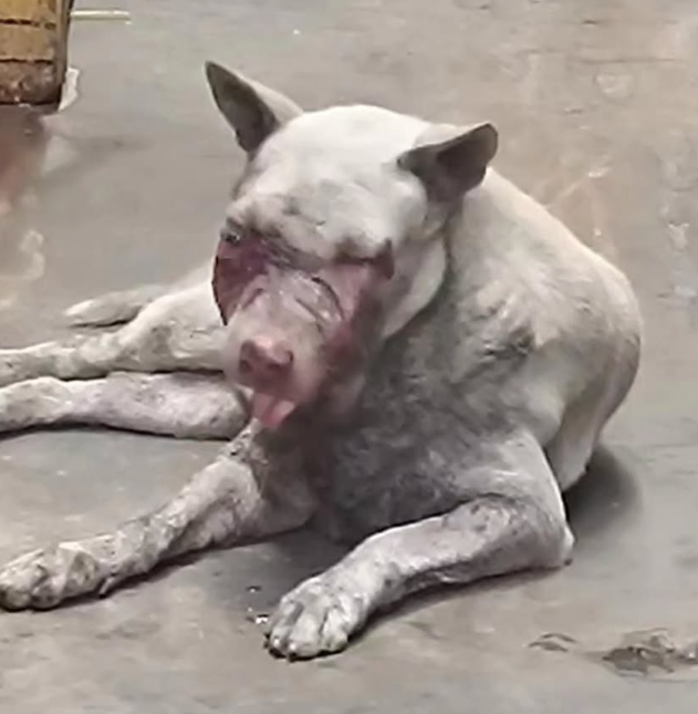 Tuas, Singapore — When rescuers found this dog, he was in an absolutely heartbreaking condition. It was immediately clear that
