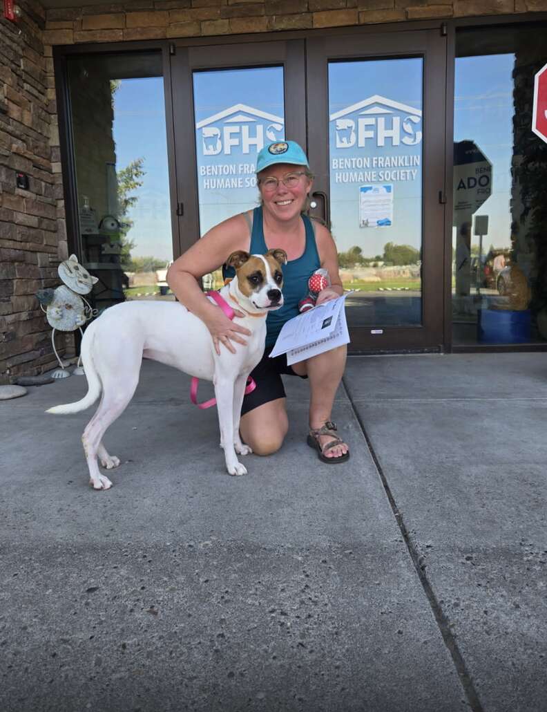 Not long after her story was shared, a loving woman came forward to adopt Tinkerbell. When the day came for her to go home, Tinkerbell could hardly contain her excitement — her entire body wiggled with joy.