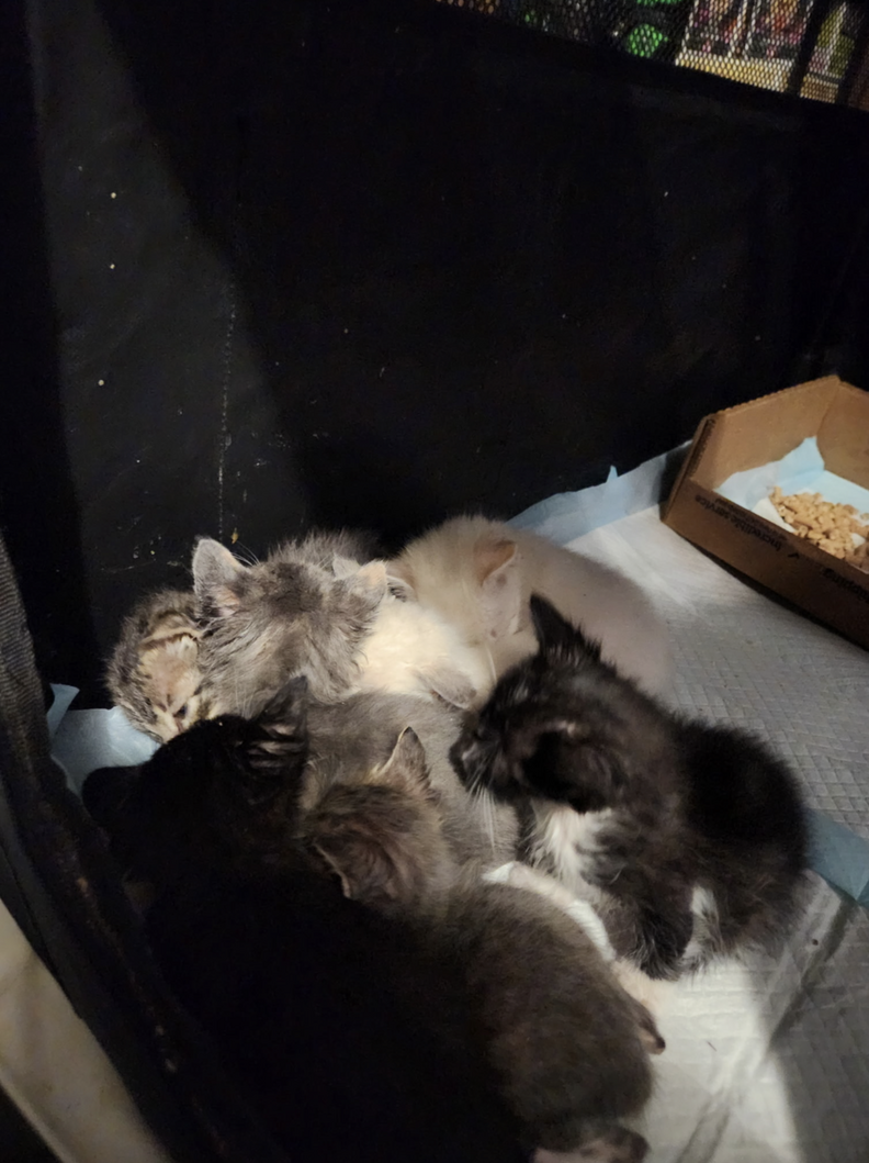 She opened the box — and her heart broke again. One tiny kitten had already passed away. The seven survivors were huddled together, confused and hungry.