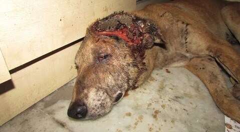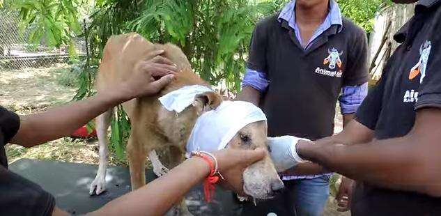 Jerry was carefully lifted from the basement and rushed to safety. The wound on his head was horrific, but the team at Animal Aid didn’t hesitate. They began treatment immediately, flushing out the infection, medicating the deep wound, and giving him the love he had gone so long without.