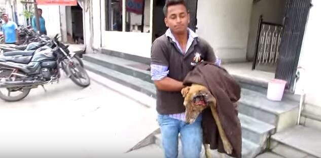 Animal Aid Unlimited, a rescue group based in India, received a call about a dog in desperate need. When their team arrived, they found Jerry barely breathing, motionless on the basement floor. At first, he didn’t move at all. But then, in one final flicker of hope, Jerry slowly lifted his head.