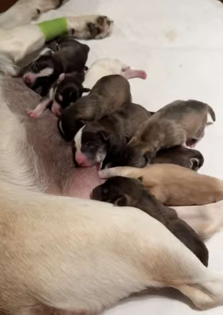 One month later, Chantilly gave birth to nine healthy puppies. Just a week after that, Cheyenne welcomed five more tiny lives.