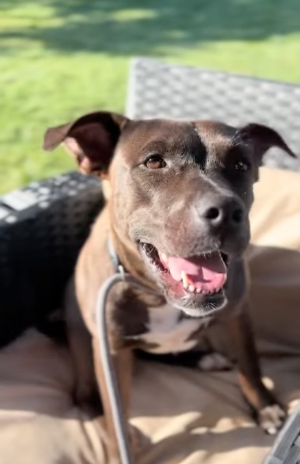 Today, Faith is blossoming into the dog she was always meant to be: silly, affectionate, and brave. While she continues to wait for her forever family, her foster mom jokes that any adopter should be ready to “lift and carry 50 pounds of princess beefcake.”