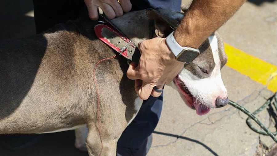 Detroit Firefighters Rescue Injured Dog Bound in Chains and Wires