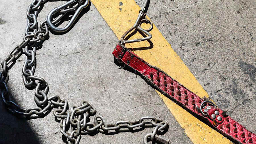 Photos released by the rescue show the grim evidence — the thick chain and tangled wire that once held the dog captive. Now, those same objects sit in sharp contrast to the gentle hands that freed him.