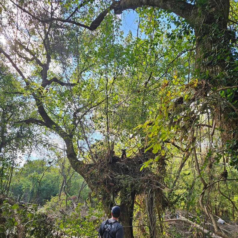 It’s believed that the dog, later named Athena, had been swept away by the raging floodwaters. He somehow managed to stay afloat on a makeshift raft of debris — which eventually got caught in a half-submerged tree. When the water receded, poor Athena was left trapped with no way to climb down.