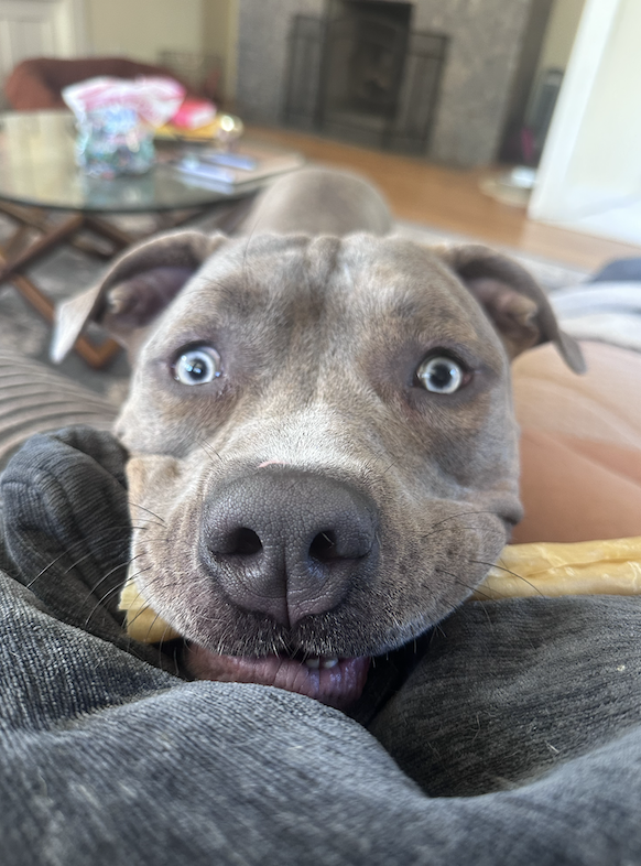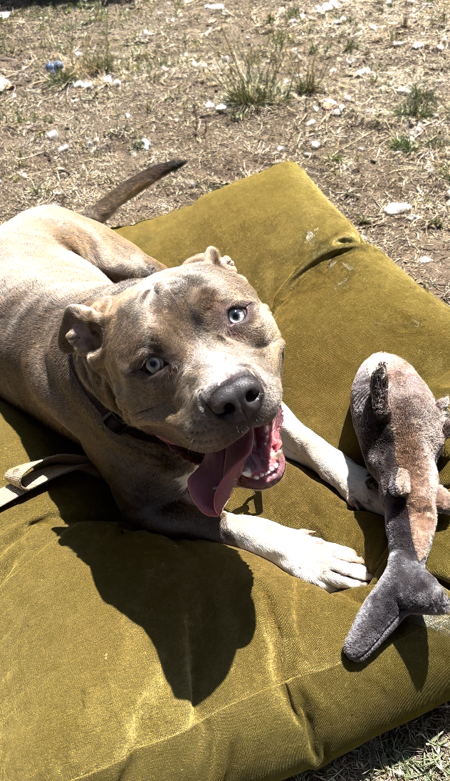 Back at her home, Juniper immediately found the dog toys and beds shared by Erica’s three pit bulls. He was so excited, but Erica quickly realized that her pack was a bit overwhelming for him. With no foster families available, she temporarily brought him to the San Diego Humane Society (SDHS), where he could get medical care and eventually find a permanent home.