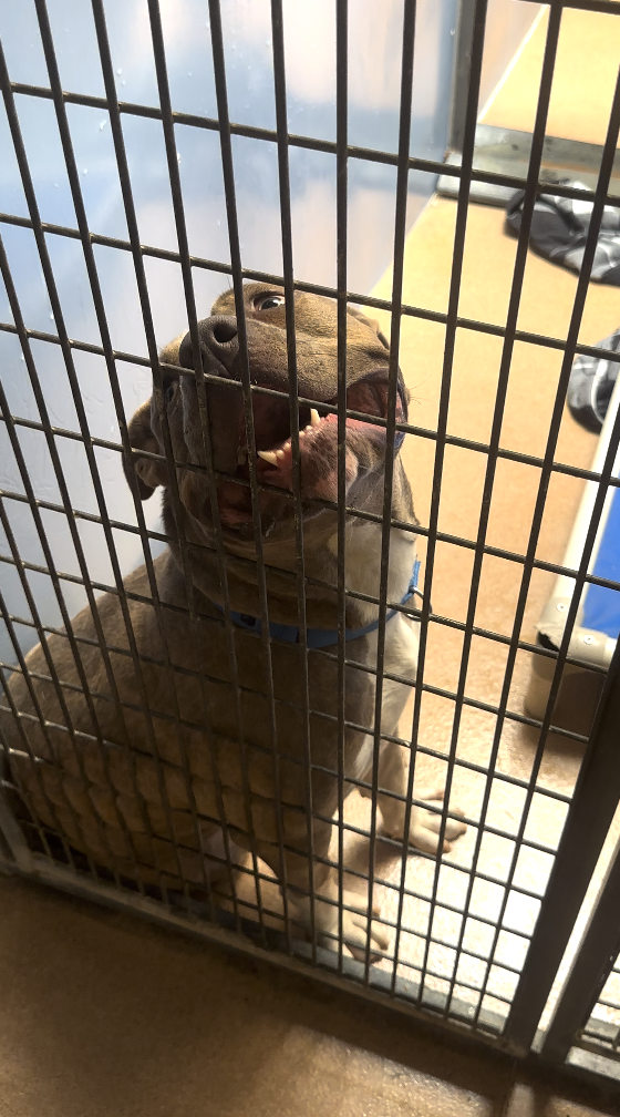 Now going by Juno, the sweet dog is thriving in foster care. He’s safe, cozy, and loved while he waits for his forever home.