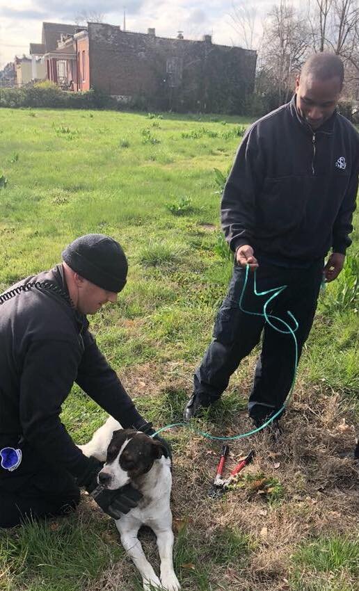 On a quiet afternoon in the Greater Ville neighborhood of St. Louis, Missouri, two women out for a stroll spotted something that made them stop in their tracks. At first, it looked like some strange, gray, tube-shaped creature moving awkwardly along the street. But as they drew closer, their hearts sank — it was actually a dog, and his head was completely trapped inside a long metal pipe.