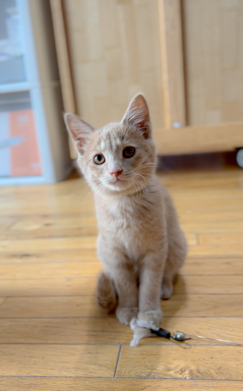 Late one night in June, a tiny orange kitten tried to cross a busy four-lane highway in St. John, Indiana. Darting through speeding cars, he somehow made it to a Walgreen’s parking lot — terrified, alone and desperately looking for safety.