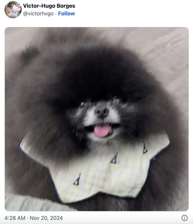 But while she may look like something from another planet, this mysterious “black orb” is just a sweet little Pomeranian — living her best, fluffy life and unintentionally confusing everyone who meets her.