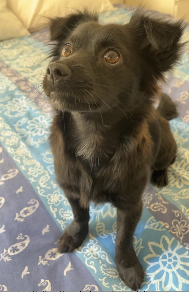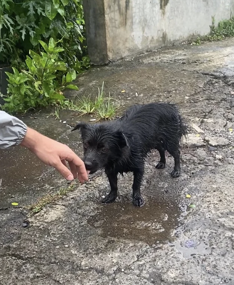 Three weeks before their departure, a heavy storm swept through their village — and in its aftermath, a small black dog with wide, soulful eyes appeared on their doorstep.