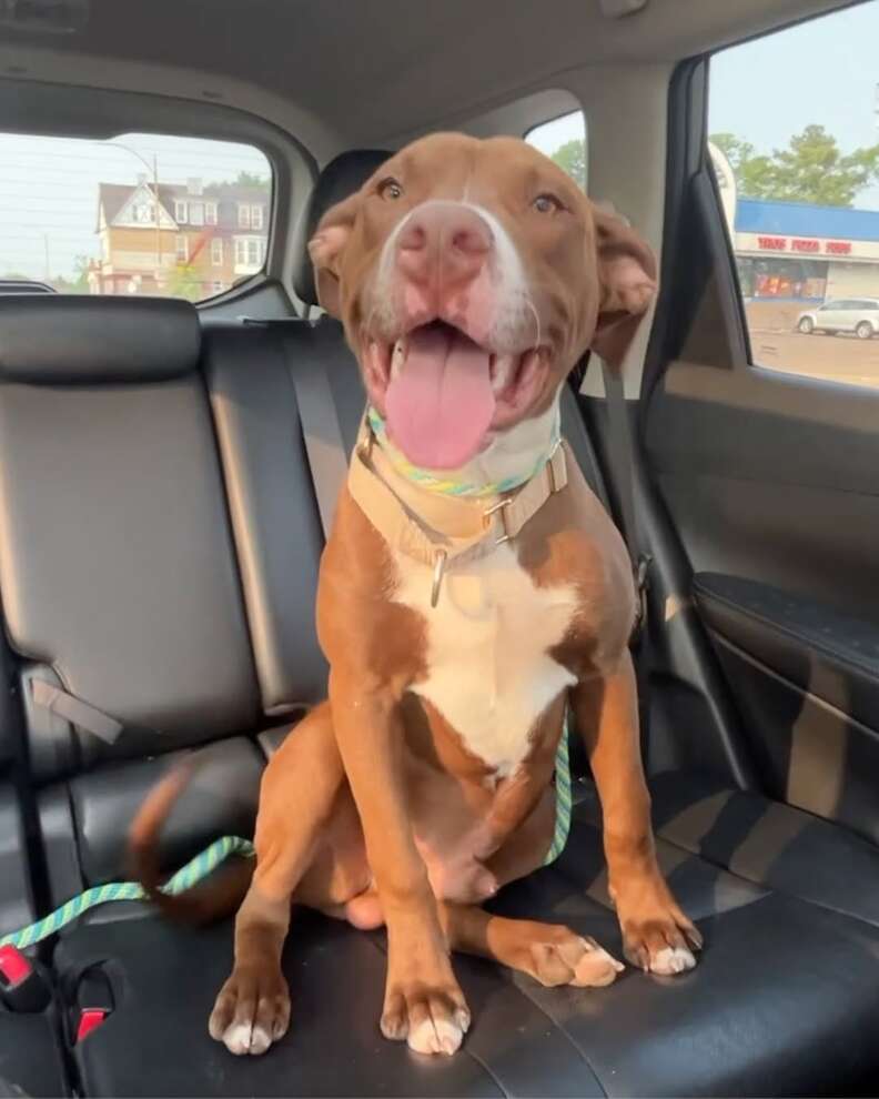 Donna gently untied the rope and coaxed Beans toward the rescue van. His tail wagged nonstop, a visible sign of relief and joy. Once inside, the rescuers showered him with praise, and Beans responded with happy wiggles and bright eyes.