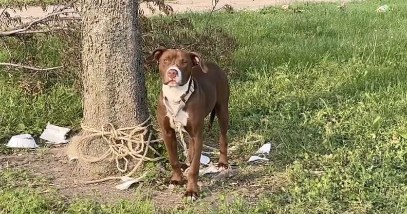 Beans was only about a year old, still full of energy and curiosity. The sight of such a young dog left tied to a tree with no way to fend for himself was both infuriating and heartbreaking. But for Beans, this moment marked the end of his abandonment and the start of his second chance.